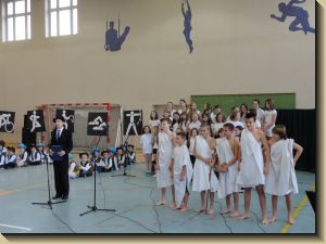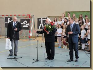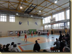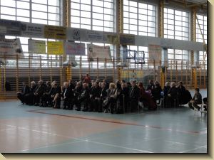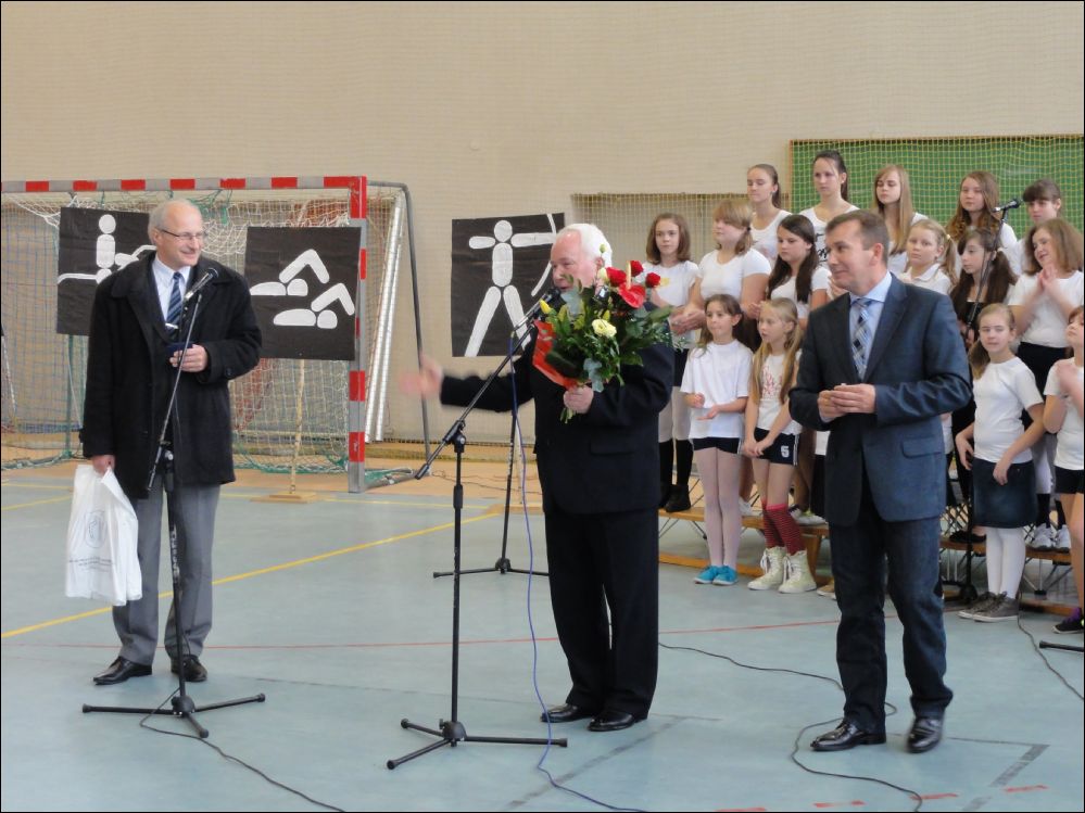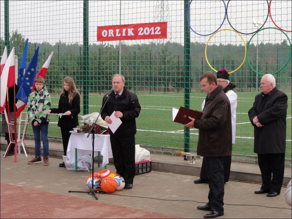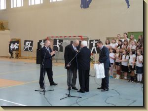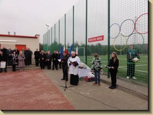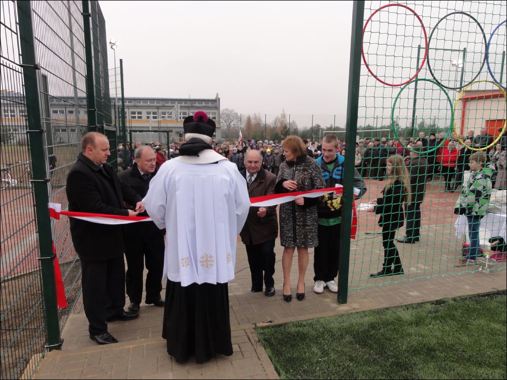 Młodzież otrzymała ufundowane przez Starostwo i Urz±d Wojewódzki piłki do siatkówki, koszykówki i gry w piłkę nożn±. W trakcie uroczysto¶ci uhonorowano medalem „Zasłużony dla Miasta i Gminy Koniecpol” cztery osoby: p. Janusza Abramowicza, p. Grzegorza Kamienowskiego, p. Pawła Kurzelewsiego i p. Andrzeja Szczeponka. Po symbolicznym przecięciu wstęgi po¶więceniu obiektu przez ks. prałata Kazimierza Bogdała – proboszcza parafii pod wezwaniem ¶w. Michała Archanioła, zebrani udali się do budynku hali sportowej, gdzie odbyła się akademia okoliczno¶ciowa w wykonaniu młodzieży Zespołu Szkół nr 2. Uczniowie pod kierunkiem p. Marzeny Madej, Iwony Buc, Wiesławy Kępskiej, Ewy Ruty, Aleksandry Walickiej i p. Piotra Gęsikowskiego przygotowali interesuj±cy, pełen energii i kolorów program, na który składały się tańce i piosenki.