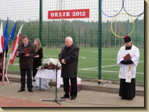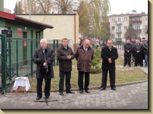 Po wprowadzeniu pocztu sztandarowego i od¶piewaniu hymnu państwowego uroczysto¶ć rozpocz±ł p. Janusz Stypka – Zastępca Burmistrza, który powitał przybyłych go¶ci i poinformował o kosztach inwestycji oraz jej wykonawcach. Okoliczno¶ciowe przemówienia wygłosili Burmistrz J. Kałuża, Przedstawiciel Wojewody p. Andrzej Szczeponek, Przewodnicz±cy Rady Powiatu p. Jarosław Rydzek, Członek Zarz±du Powiatu p. Henryk Kasiura oraz Burmistrz ¦niatynia Anatolij Szumko.